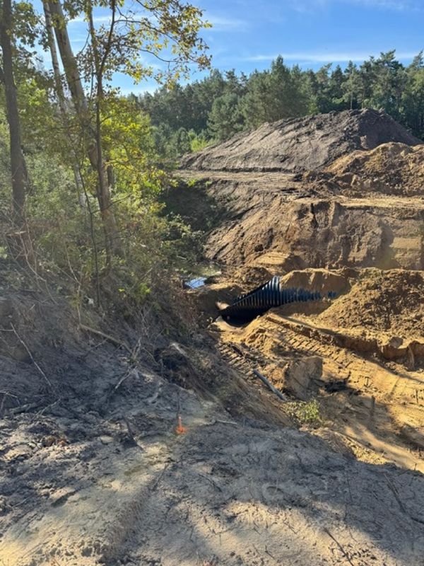 • Wykonano przepust DN1800 w km 1+580, trwa zasypka i obsypka